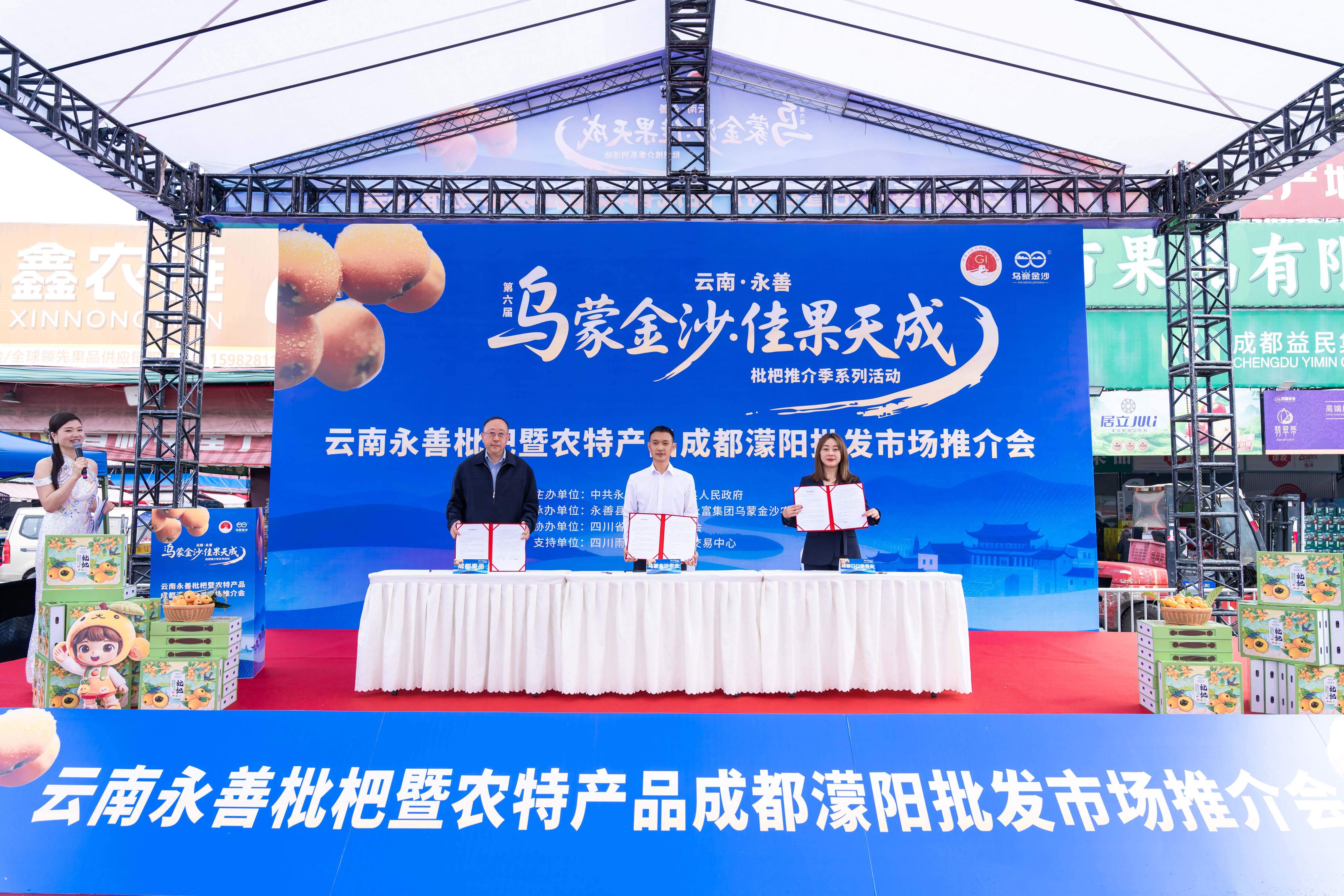 在现场嘉宾的共同见证下,产销对接结出务实成果。永善县乌蒙金沙农业开发投资有限公司与成都市果品有限公司、成都市口口脆果业有限责任公司现场签署采购合作协议,标志着永善枇杷正式稳定进入川渝核心市场,为长期稳定的产销合作关系奠定了坚实基础。活动结束后,永善县一行还实地考察了濛阳市场,并与重点经销大户进行了深入对接,进一步拓宽了销售渠道。